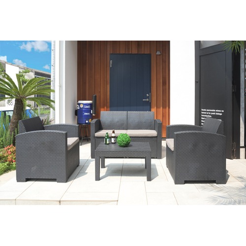 ガーデンリビング4点セット ソ ファ&テーブルセット リゾート バルコニー テラス 水濡れOK イ ンテリア 家具 ブラック ※セッ ト販売