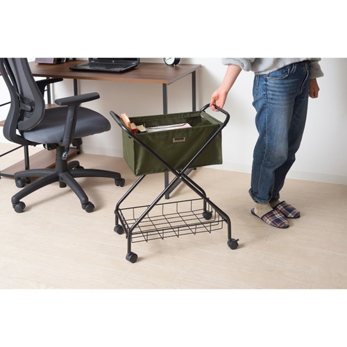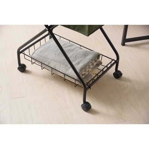 クールなスチールとファブリックを組み合わせたバスケットワゴン。折りたたみ可能で持ち運びも簡単。さまざまなシーンで活躍します。