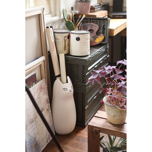 白猫 にゃんこ ネコ 傘立て アンブレララック アンブレラスタンド 傘入れ 陶器 ストーン風 玄関 収納 インテリア おしゃれ