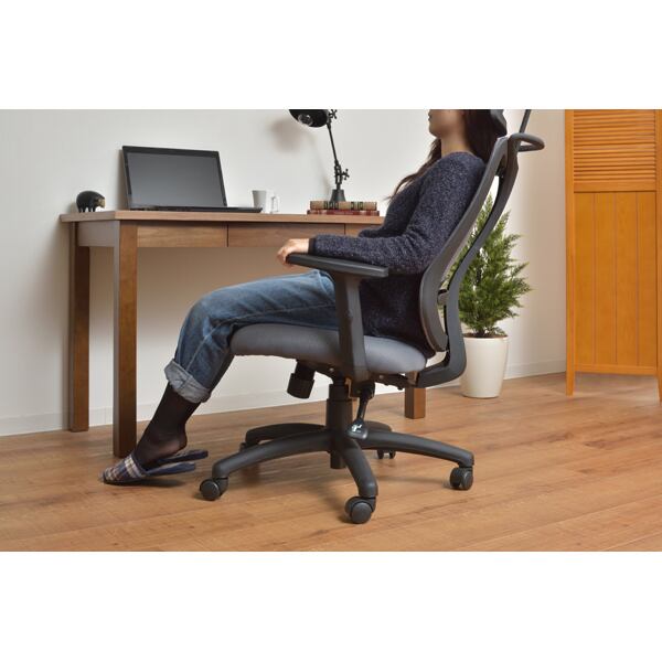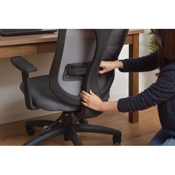 オフィスチェア グレー ロッキング機能 肘付き 事務所 椅子 デスクチェア パソコンチェア 高さ調整 キャスター付き 背面メッシュ