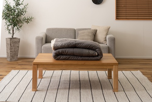 北欧テイストからヴィンテージテイストまで、さりげなくお部屋に溶け込む使いやすい【バンダナ】柄のコタツ布団。布団のヘリ部分は毛足の短いボア仕立てなので、デザイン性も問題なし。裏面は保温性のあるフリース素材を使用した機能的にも問題なしのコタツ布団です。